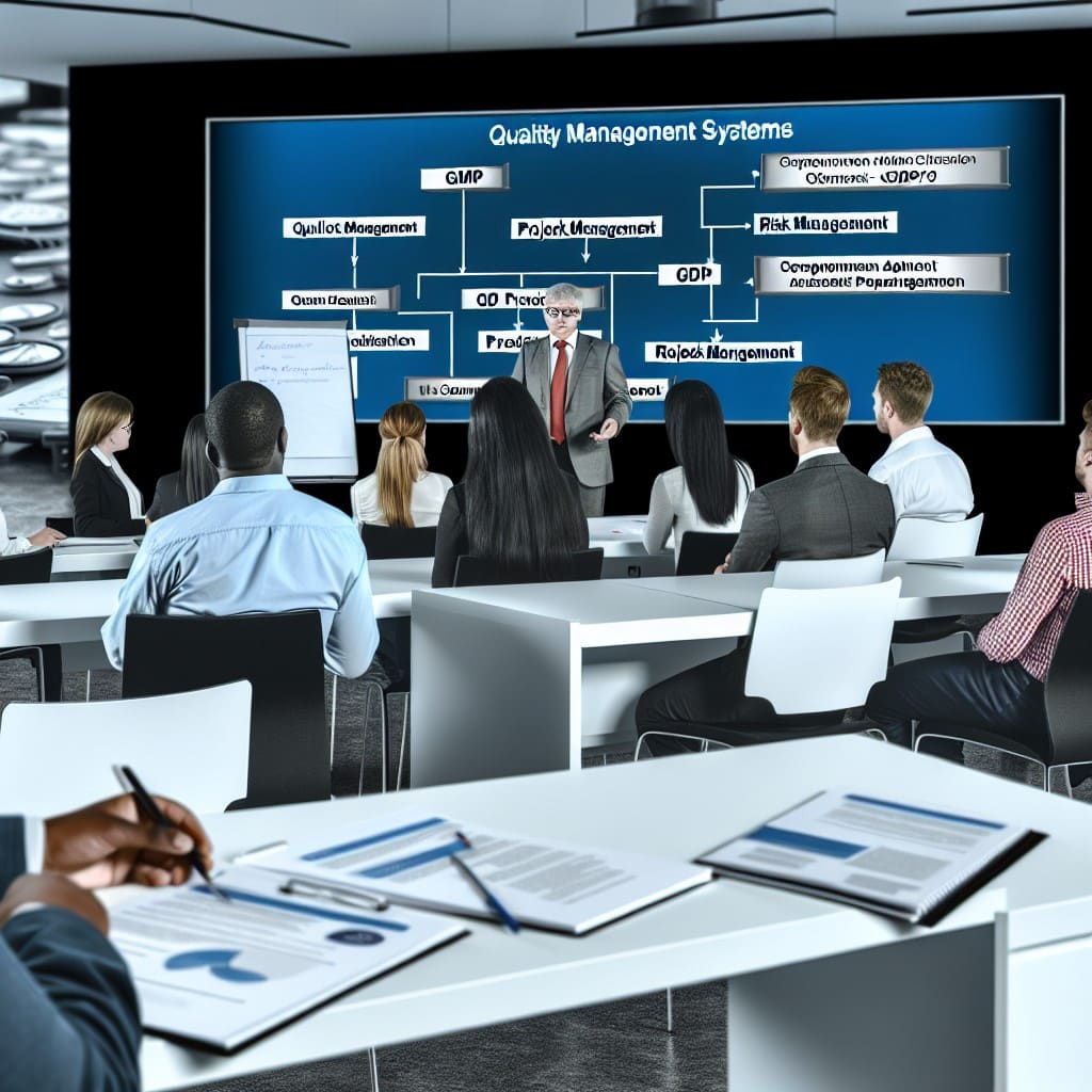 Ein weiterer Schwerpunkt liegt auf dem Aufbau und der Verbesserung von Qualitätsmanagement-Systemen nach GMP. Hier werden methodische Konzepte zur Implementierung und Überwachung von QM-Systemen vermittelt, die Fach- und Führungskräfte im Bereich Qualitätsmanagement ansprechen.