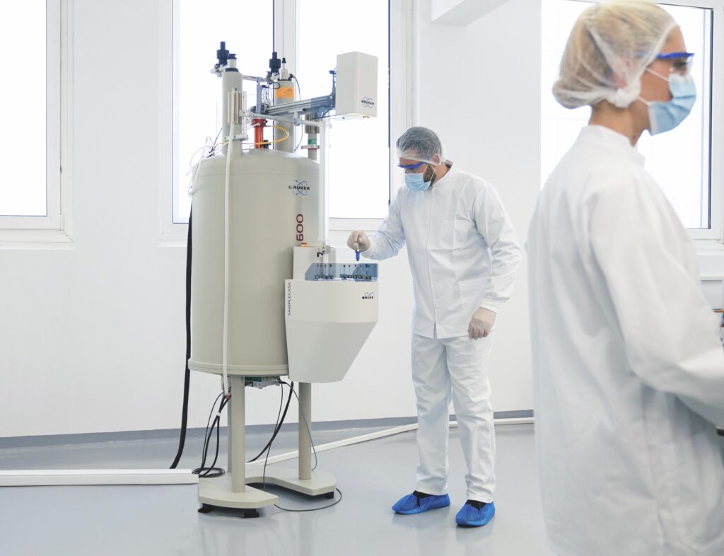 Um wirklich jede Frage beantworten zu können, bedarf es nicht zuletzt einer modernen Ausstattung mit einem 600-Megaherzt-NMR-System (z.B. Avance III HD 600, Bruker) und einem 24-Positionen-Autosampler für den Rund-um-die-Uhr-Betrieb. Für den streng regulierten Bereich (z.B. Pharma) ist darüber hinaus die GMP-Zertifizierung eines solchen Labors eine Selbstverständlichkeit.