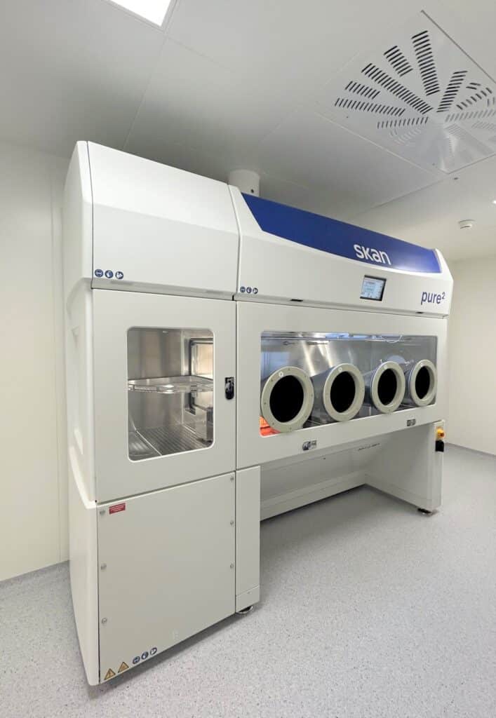 Herzstück der neuen, hochmodernen Einrichtung ist der «pure2»-Isolator von Skan. Die zuverlässige, einfach zu integrierende Containment-Lösung sorgt für die sichere Handhabung von Substanzen mit einem Arbeitsplatzgrenzwert (OEL – Occupational Exposure Limit) von unter 50 Nanogramm pro Kubikmeter. Die EKAS-Richtlinie 1871 und das Containment Manual der ISPE D/A/CH-Arbeitsgruppe fordern beim Umgang solcher Substanzen den Einsatz eines Isolators anstelle von offenen Sicherheitswerkbänken. Damit schliesst sich eine Lücke, und es bieten sich neue Möglichkeiten für Solvias.