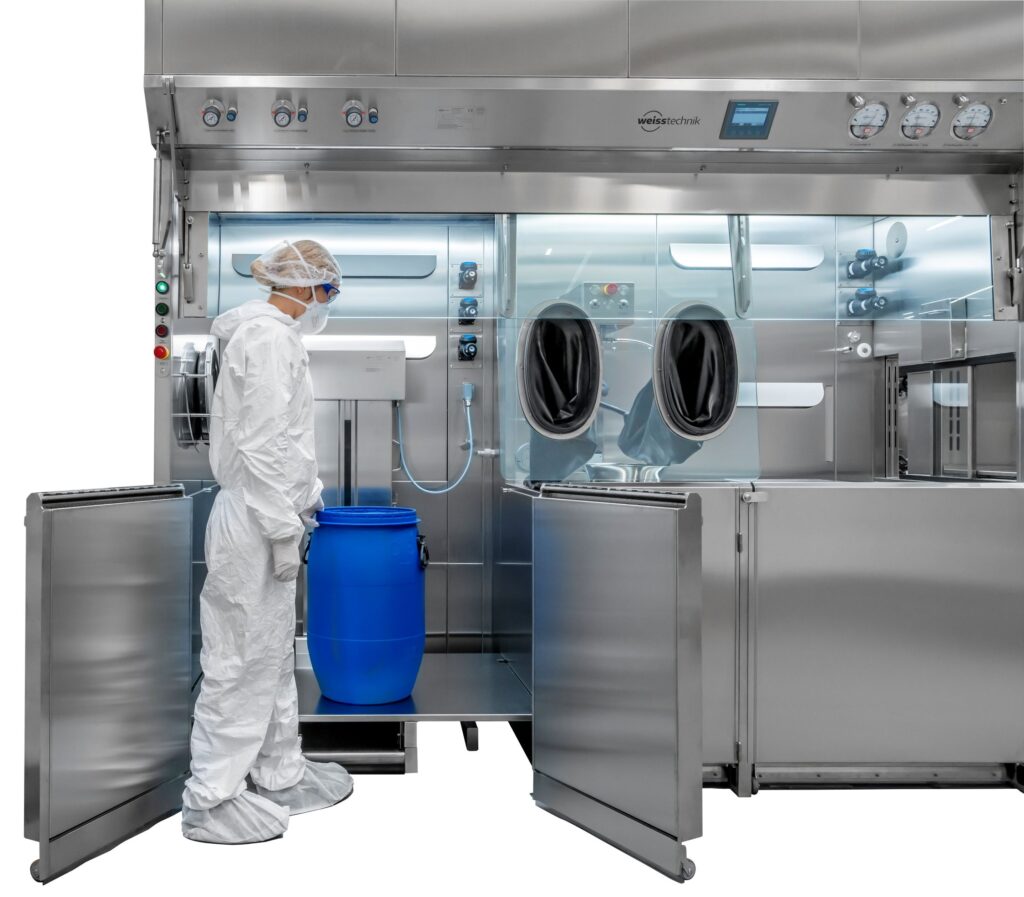 Von der Weiss Technik wurde hierfür ein neuartiges Anlagensystem mit zwei unterschiedlichen Luftführungssystemen entwickelt Die Lösung kombiniert ein Ejektor-Luftdüsen-Konzept mit geringsten Luftdurchsatzraten mit einer 3-Zonen Reinluftschleiertechnik für maximalen Kontaminationsschutz.