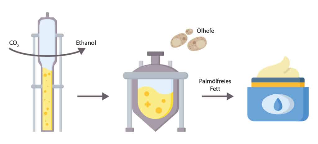 Nach langjähriger Forschung ist es Mibelle, Lanzatech und dem Fraunhofer-Institut für Grenzflächen- und Bioverfahrenstechnik (IGB) gelungen: Mithilfe moderner Biotechnologie wird aus CO₂ ein palmölfreies Fett gewonnen. Dadurch soll Palmöl in Kosmetik und vielen anderen Produkten des täglichen Lebens ersetzt werden.