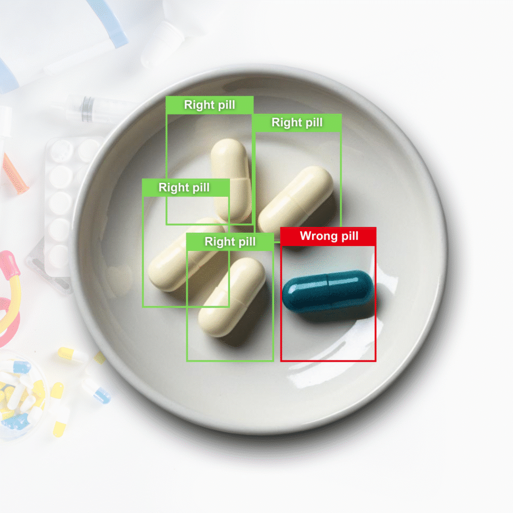 KI kann aber auch zur Tablettenklassifikation eingesetzt werden, wo Präzision und Geschwindigkeit entscheidend sind. Die EyeVision Software nutzt KI, um zwischen korrekten und fehlerhaften Tabletten anhand von Farbe, Form oder Textur zu unterscheiden. Mit einfachen Annotationswerkzeugen lernt das System schnell Variationen zu erkennen, selbst in komplexen Produktionsumgebungen. Beispielsweise können wenige Bilder von Tabletten annotiert werden, um die KI mittels «Transfer Learning» zu trainieren, sodass sie Tausende von Tabletten pro Minute mit hoher Genauigkeit klassifizieren kann. Dies reduziert nicht nur menschliche Fehler, sondern beschleunigt auch den Inspektionsprozess, sodass nur einwandfrei hergestellte Tabletten weiterverarbeitet werden.