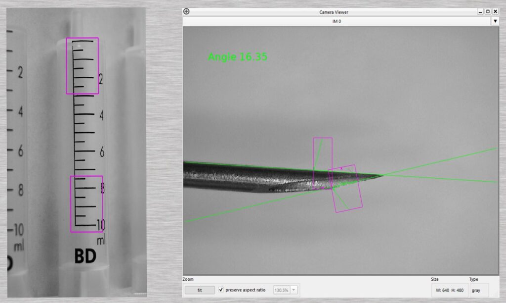 Nadelinspektion: Die Software überprüft die Nadelspitzen mit einer Genauigkeit von 1/100 mm, um sicherzustellen, dass nur einwandfreie Nadeln verwendet werden.